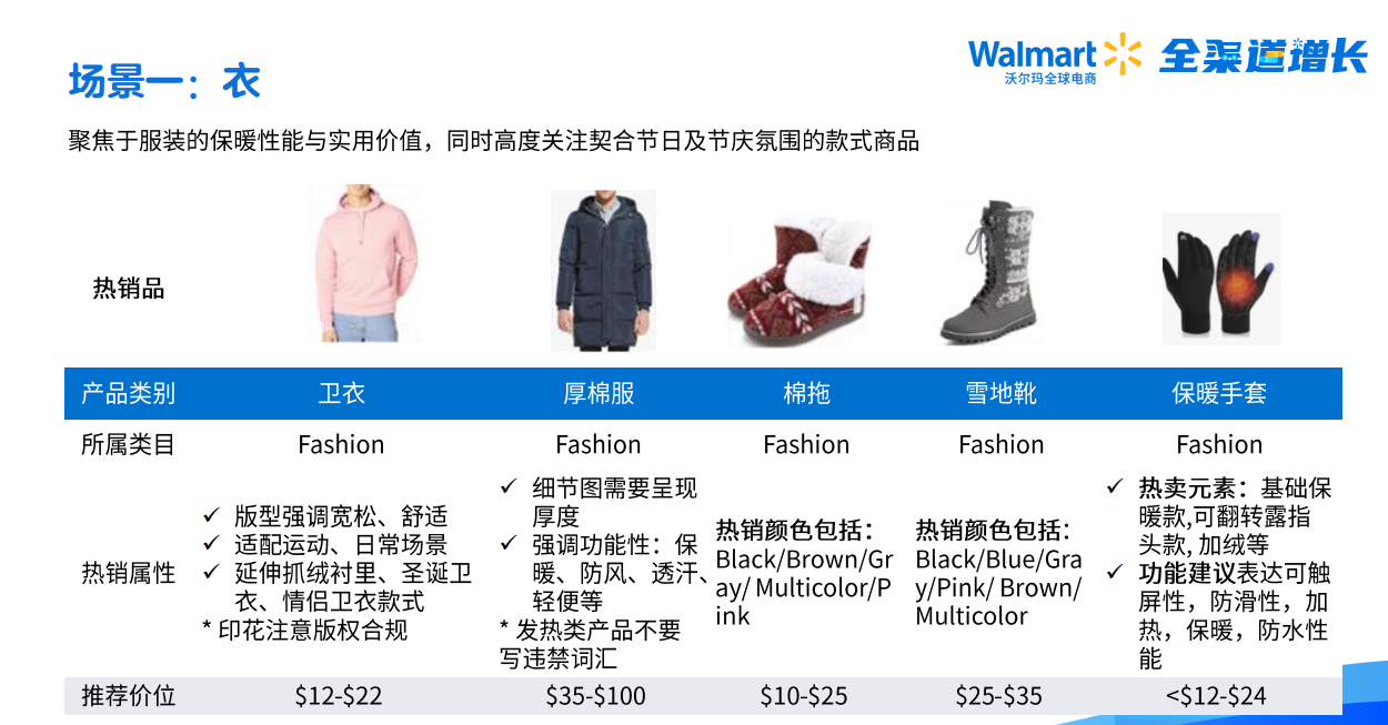 以上内容出自沃尔玛官方推荐,各位卖家可以对照作为自己在秋冬旺季的一个选品参考,为即将到来的年底秋冬旺季打造爆款做准备。