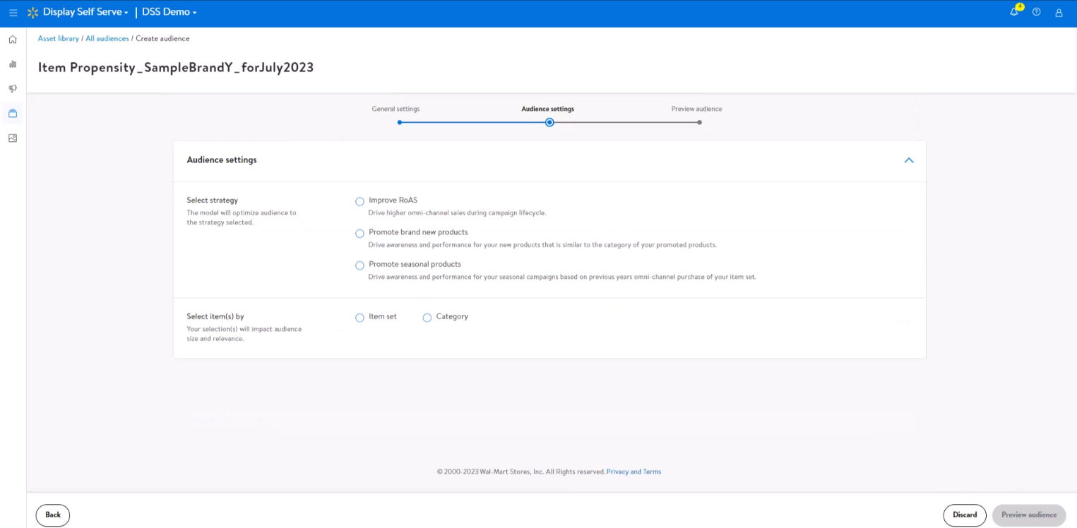 在创建Custom受众时,沃尔玛官方建议提前建立Targeting Item sets以供接下来创建过程中直接使用该要素。