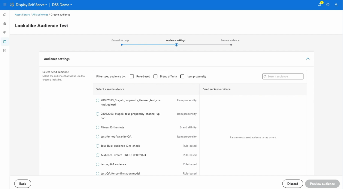 如果选择“lookalike”,将以rule-based与predictive受众为种子构建新受众,因此我们在创建该受众前,作为种子的受众必须处于“Ready”状态。