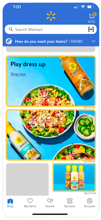 Walmart Onsite Display广告是一种在沃尔玛桌面端、移动网页端与APP端上展示的,高度可视化、可以精准定向的广告形式,它通过生动的图像、文字等形式吸引消费者,为广告主提供直接触达潜在消费者的渠道。