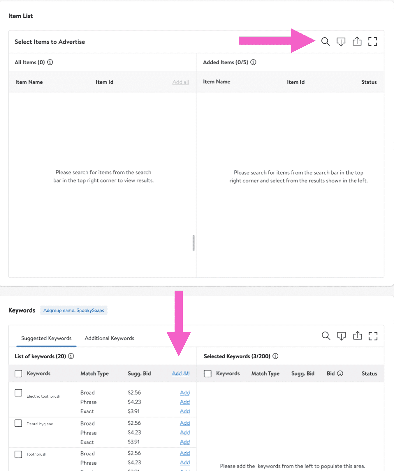 确定广告要使用的视频素材后,我们还需要对商品与关键词定向以提高Sponsored Videos广告投放准确度。
