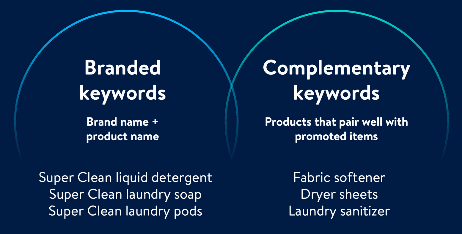 相比于Sponsored Product ads可以使用自动投放与手动投放,Sponsored Brand ads只能使用手动投放,因此如何选择关键词对于广告效果也有影响。关键词除了选取与投放商品相关的词语外,还建议与品牌挂钩,即品牌名+商品名,比如您的品牌为“Super Clean”,投放的商品有洗涤剂、洗衣皂,那么关键词可以是“Super Clean liquid detergent”, “Super Clean laundry soap”。另外,每个广告活动最多可以添加200个关键词,且关键词的竞价必须大于等于$1。