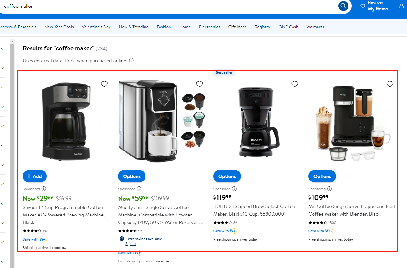 广告常出现在沃尔玛首页搜索页面、浏览页面或者相关商品页面的推荐中。支持自动投放与手动投放。