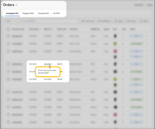 • 如果您的申请通过,沃尔玛将在24-48小时内为您的账户激活Smart Tags,您可以在“Orders”面板查看是否出现Smart Tags,具体方法为在“Unshipped”板块下查看那些发货截止日期指标下带有下划线的内容,鼠标悬停在它上方即可看见Smart Tag发货截止日期。一般而言,Smart Tags会出现在那些可以在2-5个工作日送达的订单,如果您的订单带有Smart Tag,意味着您曾送达过该地区的订单,且送达的速度快,绩效指标高。