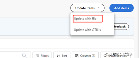 在Seller Center的左侧导航栏下选择“Items”,页面右上角点击“Update items”并选择“Update with file”