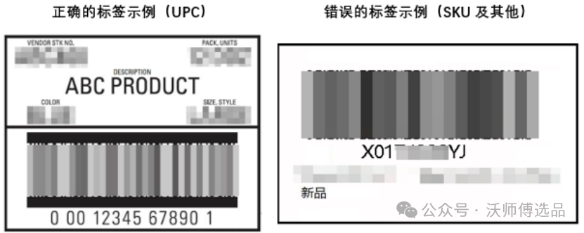 5. 所有标签必须清晰可见可扫描。如果商品未带有可扫描的条码,沃尔玛物流中心将收取Unplanned prep费用