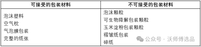 9. WFS对于包装材料也有一定要求: